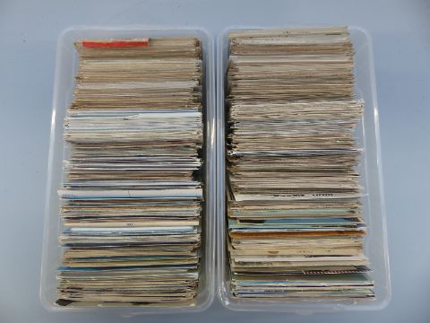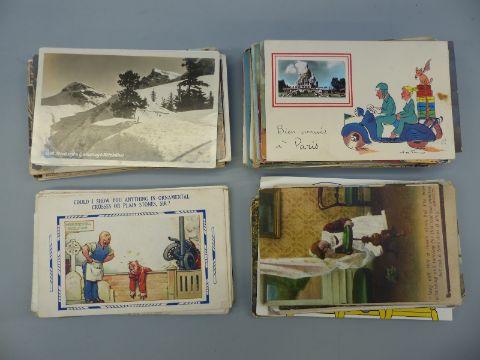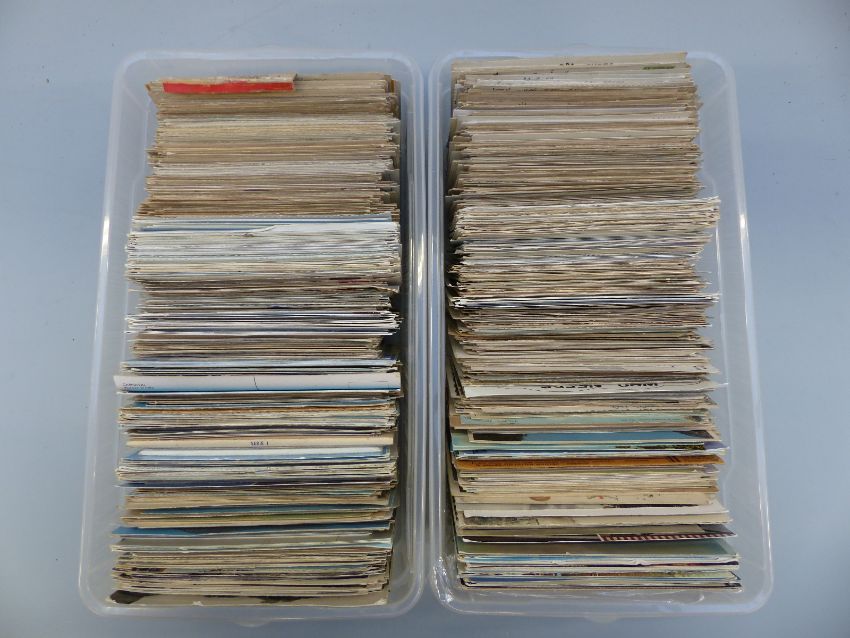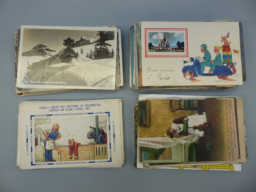 Two plastic boxes of mainly foreign postcards, some topographical, humorous etc