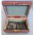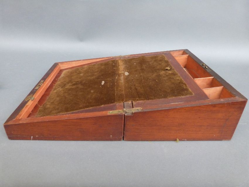 A 19thC mahogany writing slope, glove box, plated cigarette box, barometer, Mackintosh toffee branded dominoes etc