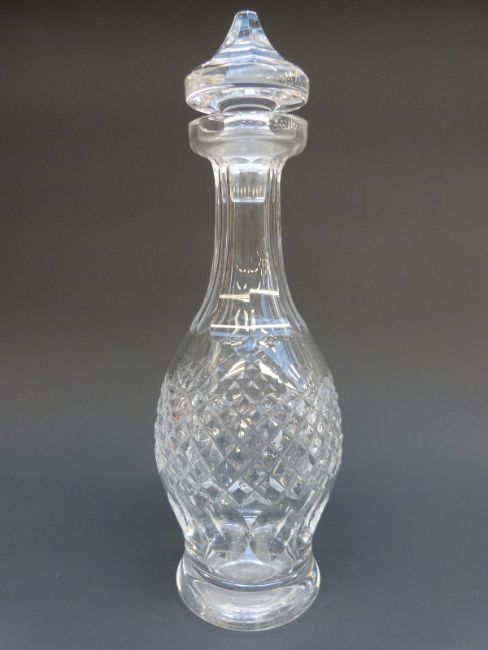 Three Waterford Crystal Colleen pattern decanters, largest 32cm tall.