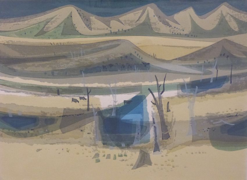 Kenneth Jack (Australian 1924-2006) signed artist's proof print 'River Flats', 32 x 42cm