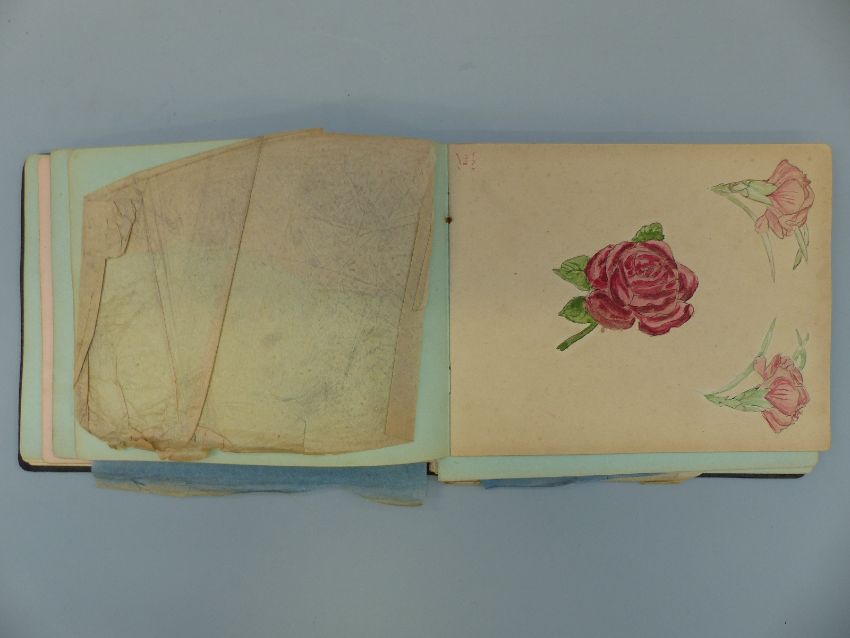 A WWI era autograph album full of drawings, watercolours and verse, military interest