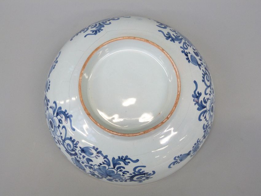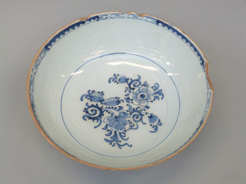 An 18thC London Delft pedestal bowl, 8cm tall, diameter 23cm