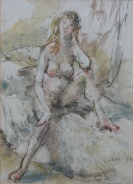 Michael D'Aguilar (1924-2011) pen and watercolour on paper nude, signed and dated 1974 lower right, 37 x 27cm