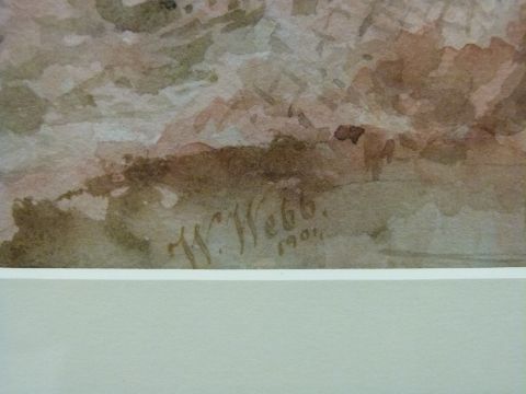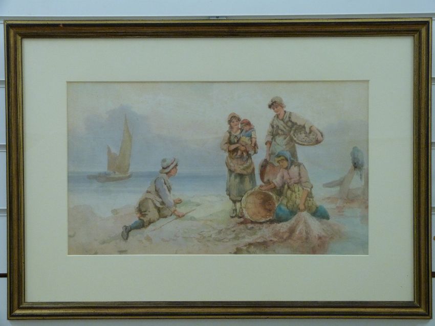 W Webb watercolour of fisherman / gleaners on a seashore with fishing boat beyond, signed and dated 1901 lower centre, 26 x 45cm
