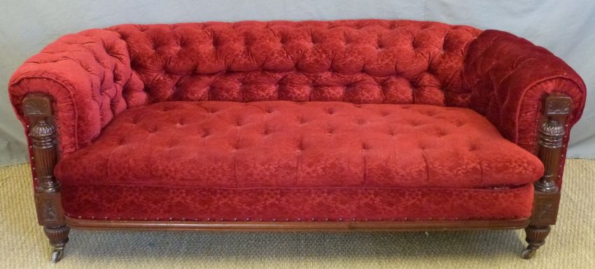 A Victorian mahogany Chesterfield sofa with carved and reeded frame, length 192cm