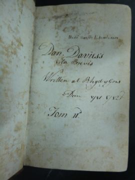 [Jewish Antiquities] Daniel Davies's Vita Brevis written at Rhydygors (Wales) in 1781 to 1782 volume 2, handwritten throughout, chapters include Jewish Sinagogue, Furniture of the Tabernacle, Herodians Gaulonitis, Sadducees & Samaritans etc bound in leather with raised spine bands and gilt lettered label