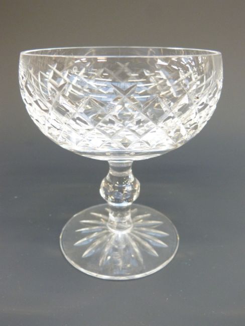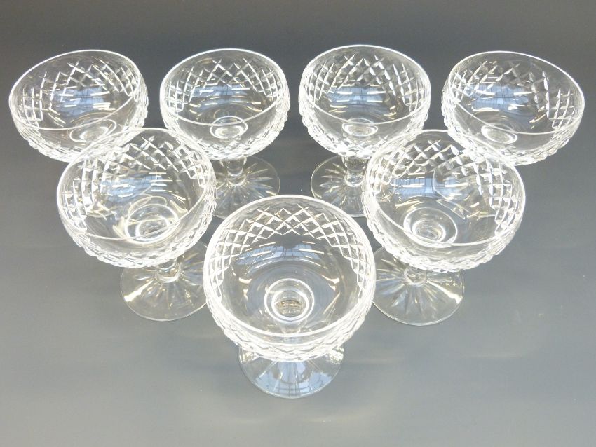 Seven Waterford Crystal Boyne pattern champagne or sherbet glasses, 11cm tall.