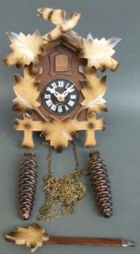 A late 20thC Black Forest German cuckoo clock together with a wooden box with secret key compartment, and a collection of carved animals