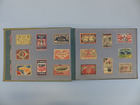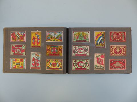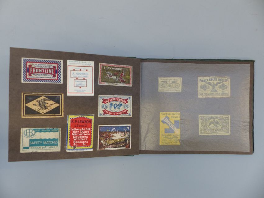 Eight albums of matchbox covers and labels, most first quarter of 20thC, including Asian and Japanese, cigarette cards including Stephen Mitchell & Son, Wills, Players, Lambert, Carreras, German passes with stamps marked Ebeswalde c1920s etc