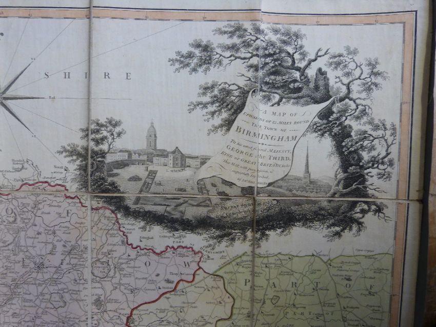 James Sherriff's Map of the Town of Birmingham, Upwards of 25 Miles Round To his most sacred Majesty George the Third, published September 20th 1798 by James Sherriff and William Faden Engraved design and cartouche with explanations, linen backed and preserved in card slipcase, 73.5 x 87cm