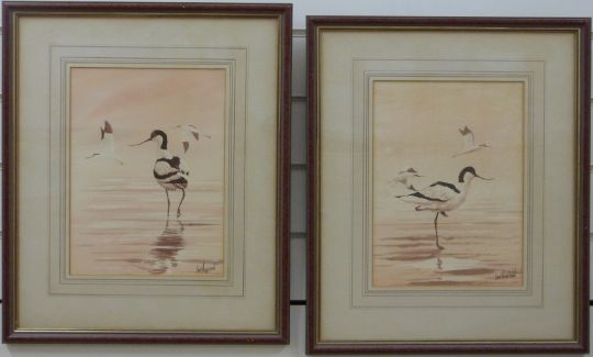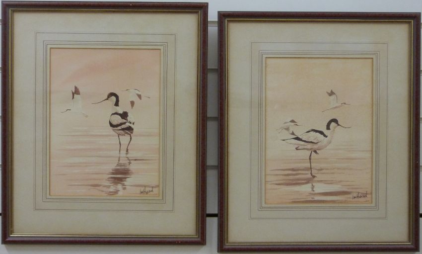 Ian Hudson pair of watercolours of avocets, signed lower right, 29 x 21.5cm