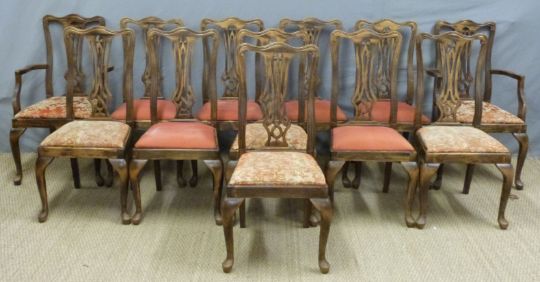 A set of 12 (10+2) dining chairs with cabriole front legs