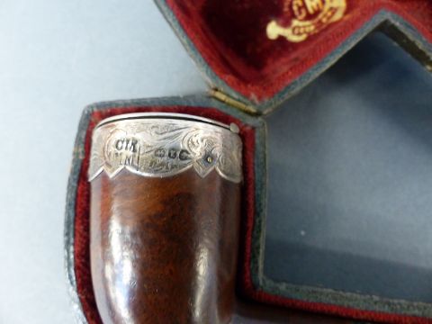 A cased hallmarked silver mounted CM crown pipe
