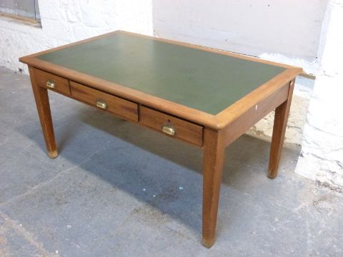 A 20thC Ministry or similar desk, marked GR with crown to locks, W153 x D92 X H77cm
