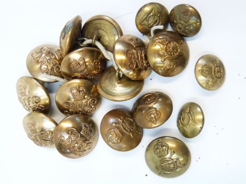 A collection of military buttons including Royal Artillery
