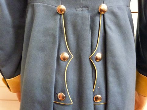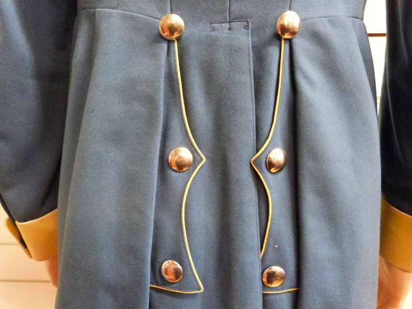 An Imperial German 16th Dragoons officer's tunic, c1899, in blue cloth with yellow facings and edging and silver wired epaulettes with gold '16', with full set of plain silver buttons