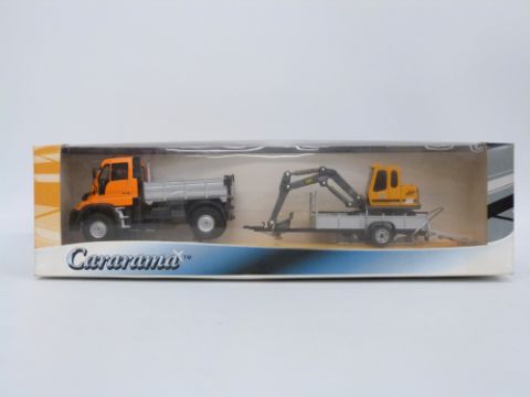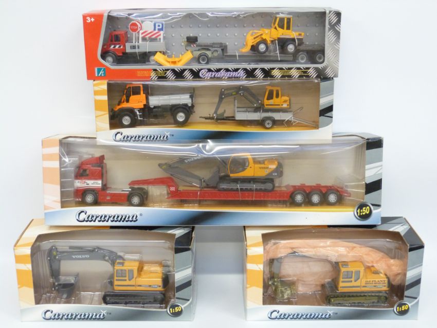 Five Cararama diecast model construction vehicle sets, all in original boxes