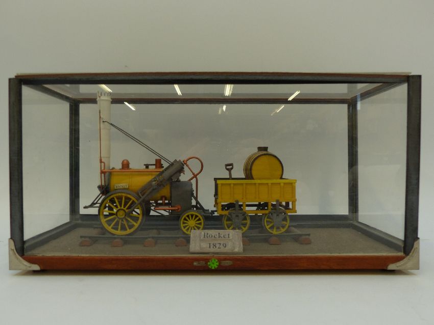 A scratch built model of Stephenson's Rocket in perspex display case, 40 x 17 x 20cm