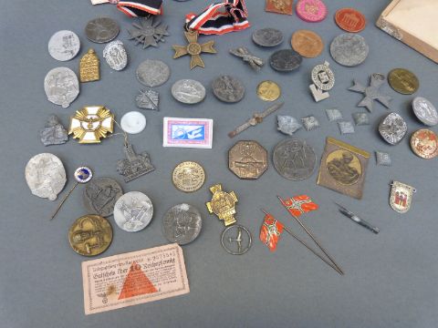 A quantity of Nazi German 1930's rally badges or tinnies, insignia, replica medals etc