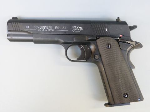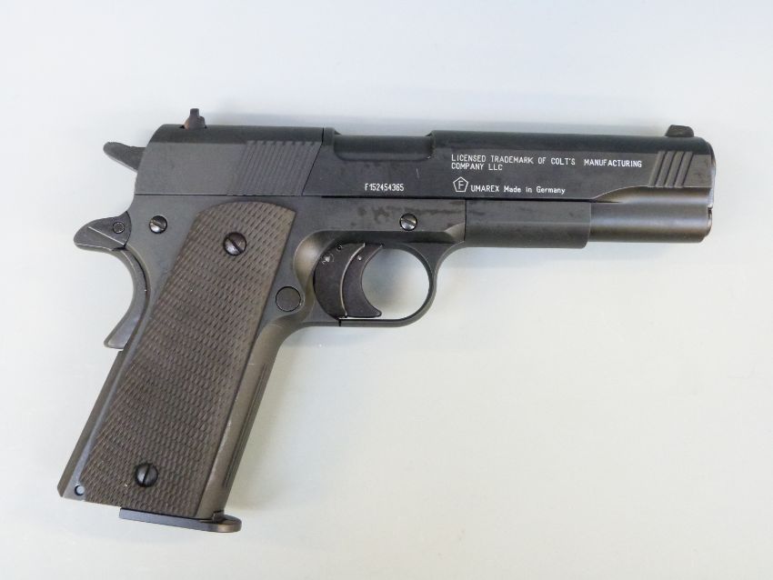 Umarex Colt Government 1911 A1 .177 air pistol in original hard case with instructions, spare magazines and CO2 canisters.