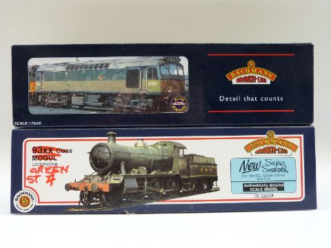 Two Bachmann 00 gauge locomotives 4-6-0 BR Class 93XX Mogul 75001 21-802 and BO-BO BR Diesel D5233 32-411, both in original boxes