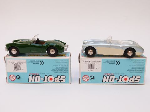 Two Norev Spot-On diecast model cars Austin Healey and MG 'A', both in original boxes.