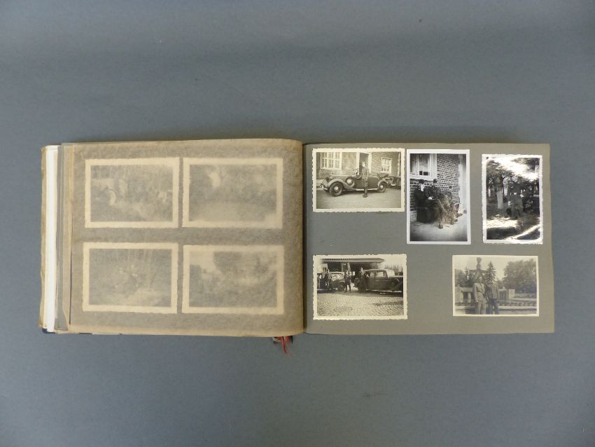 A WWII Nazi German Luftwaffe photograph album including group photo, vehicles, shot down aircraft, parades etc