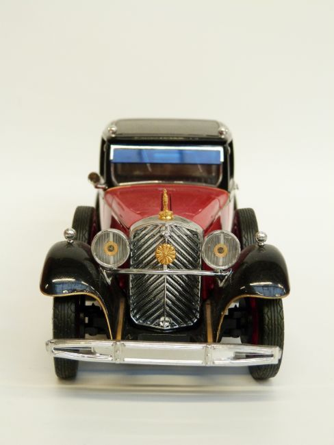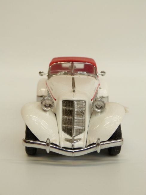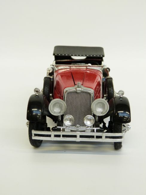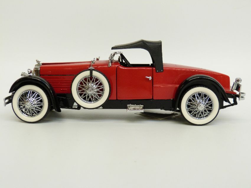 Six Franklin Mint diecast model cars comprising 1985 Lamborghini Countach 5000 S, 1935 Auburn Boattail Speedster, 1929 Rolls-Royce Phantom 1, 1928 Stutz Black Hawk Boattail Speedster, 1936 Bugatti Type 57SC and 1935 Mercedes-Benz 770K Grosser