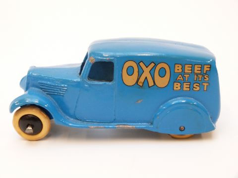 Dinky Toys diecast model Oxo Beef At Its Best / Beef In Brief delivery van with blue body, gilt decals, black hubs and cream tyres