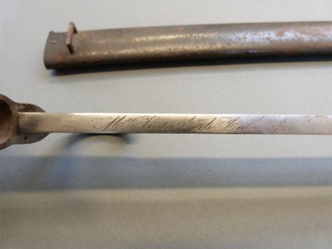 French 1868 chassepot sword bayonet marked 70866 to hilt, blade length 57cm, with metal scabbard
