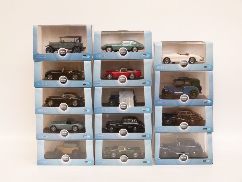 Fourteen Oxford Automobile Company 1:43 scale diecast model cars, all in original boxes