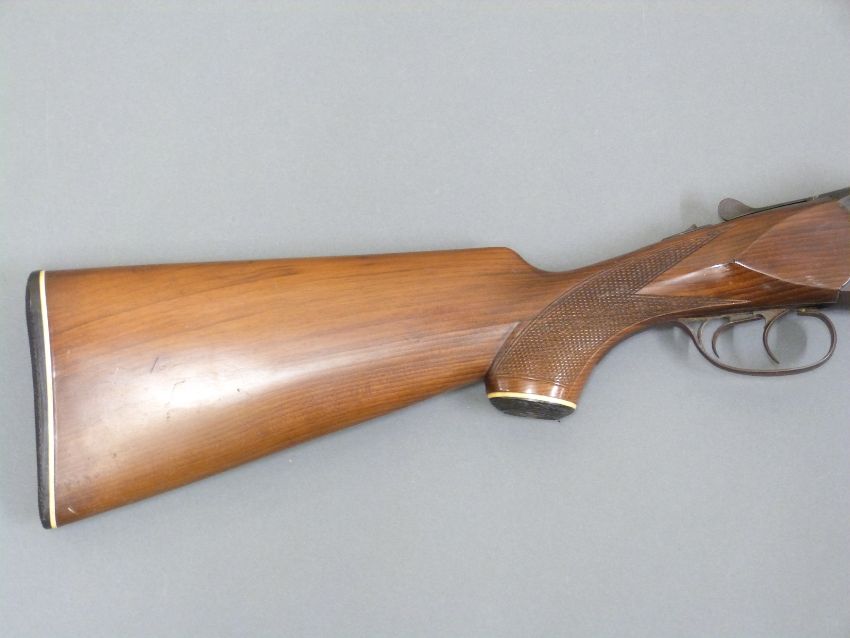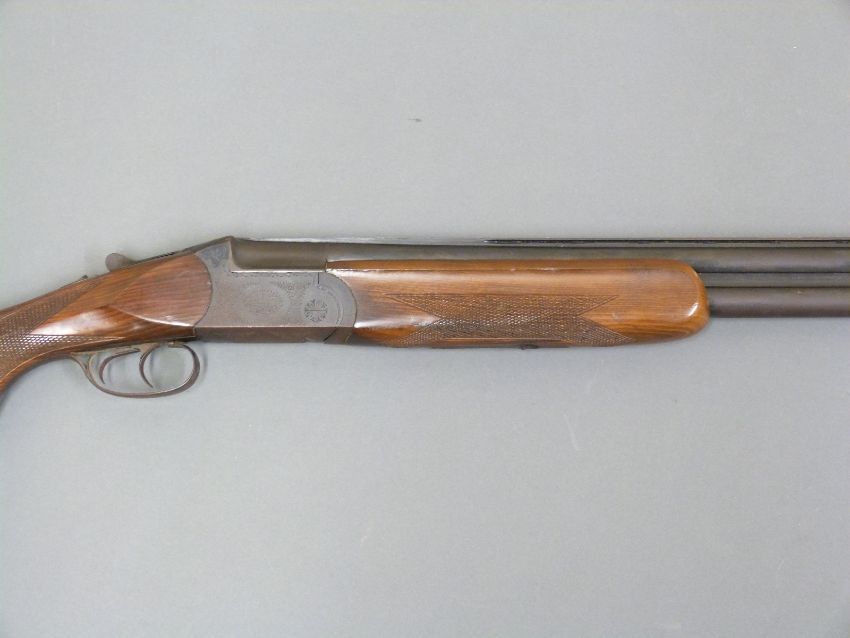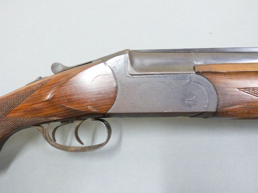 Pioneer 12 bore over and under shotgun with engraved locks, top lever, underside and trigger guard, chequered semi-pistol grip and forend, double trigger, ball foresight, vented top rib and 27.75 inch barrels choked 3/4 and full, overall length 112cm, length of pull 36.5cm, serial number 104080. PLEASE NOTE THAT A VALID RELEVANT FIREARMS/SHOTGUN CERTIFICATE IS REQUIRED TO HANDLE/PURCHASE THIS ITEM.