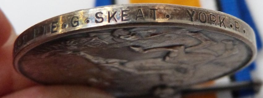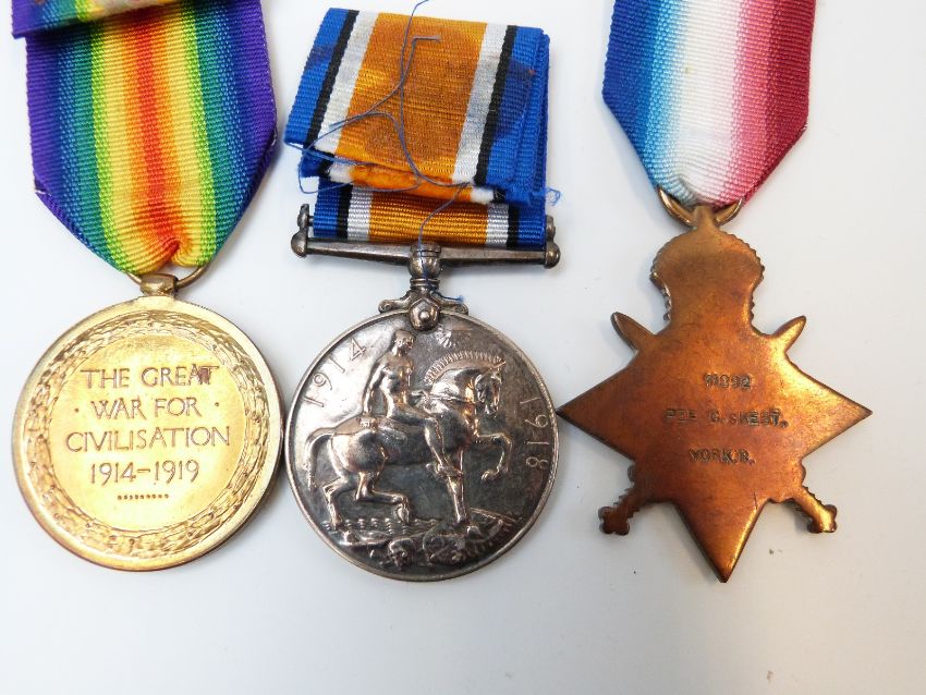 WWI medal trio awarded to 11892 Pte G.Skeat Yorkshire Regt. comprising 1914/1915 Star, War Medal and Victory Medal