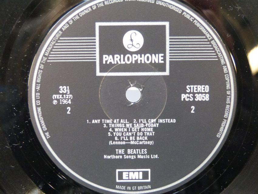 Five The Beatles albums all in stereo with black / silver with two in flipback sleeves, includes A Hard Day's Night ( x2 ), Help, For Sale and Revolver, condition of vinyl appears to be at least excellent, some spine damage to one copy of A Hard Day's Night