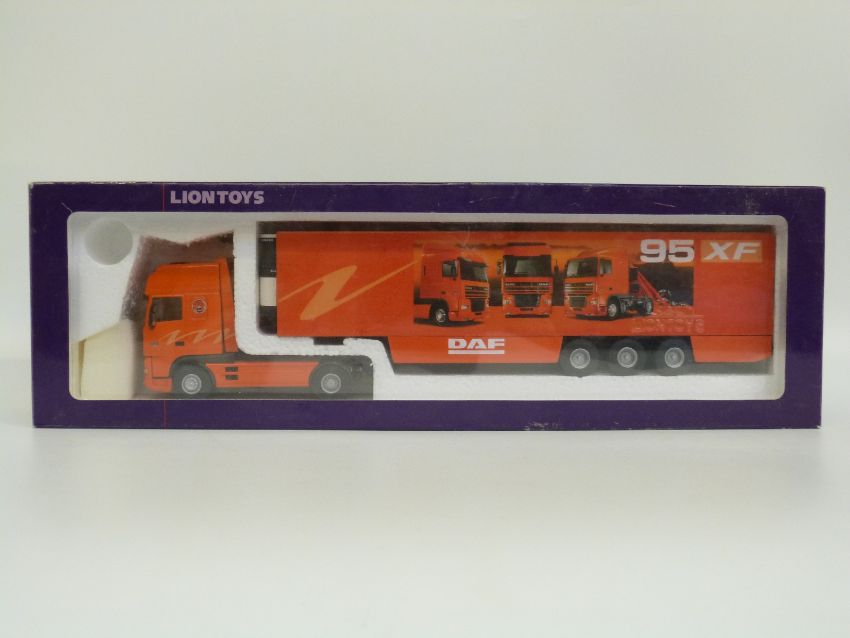 Three 1:50 scale diecast model lorries comprising Joal Renault Magnum with Komatsu Trailer, Lion Toys Leyland DAF 95XF and Tekno Leyland DAF Concept 95, all in original boxes