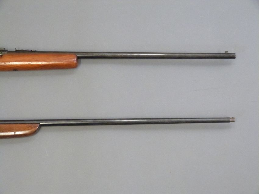 Two .22 rifles Winchester 74 L semi-automatic with open sights, scope mounts and named 24 inch barrel, overall length 111cm, serial number 117311 and Webley & Scott bolt action with bead front sight and named 25 inch barrel, overall length 116.5cm, serial number 3177. PLEASE NOTE THAT A VALID RELEVANT FIREARMS/SHOTGUN CERTIFICATE IS REQUIRED TO HANDLE/PURCHASE THIS ITEM.