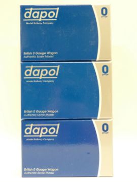 Three Dapol 0 gauge goods wagons comprising two BR 7 plank wagons and an Express Dairies 6 wheel milk tanker, all in original box