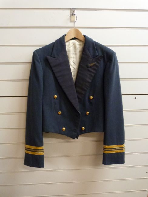 RAF great coat with buttons and rank badges together with RAF mess dress jacket and waistcoat