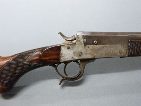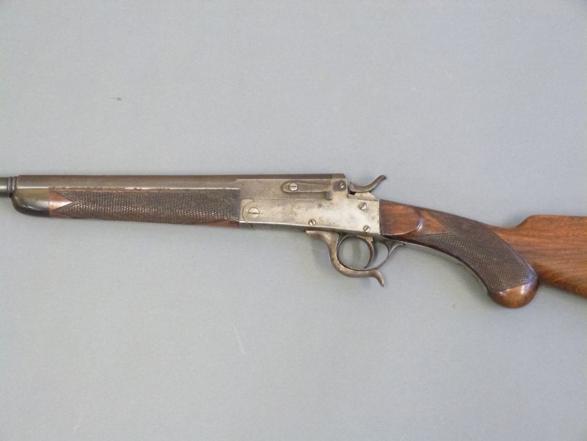 Charles Lancaster .250 centre fire rook rifle converted to a .410 hammer action ejector shotgun with push-forward underlever, chequered semi-pistol grip and horn tipped forend, vacant cartouche to underside of stock and 26.25 inch part octagonal barrel engraved 'Charles Lancaster London.', overall length 106cm, length of pull 35.5cm, serial number 13339. PLEASE NOTE THAT A VALID RELEVANT FIREARMS/SHOTGUN CERTIFICATE IS REQUIRED TO HANDLE/PURCHASE THIS ITEM.