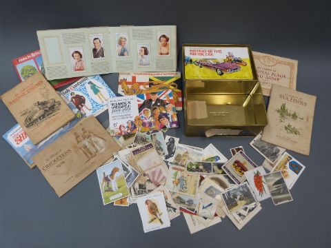 An assortment of cigarette and tea cards to include railway engines & cricketers, some complete albums, includes Kensitas silks, Turf, De Reszke, Sarony, Cavanders etc