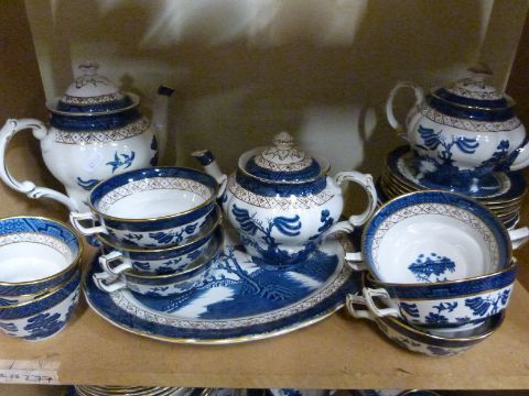 Booths Old Willow blue and white dinner and teaware, approximately 78 pieces