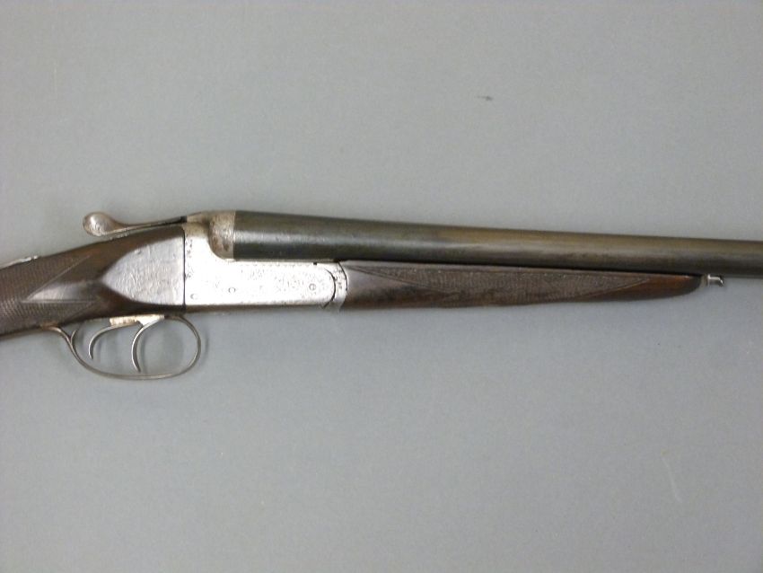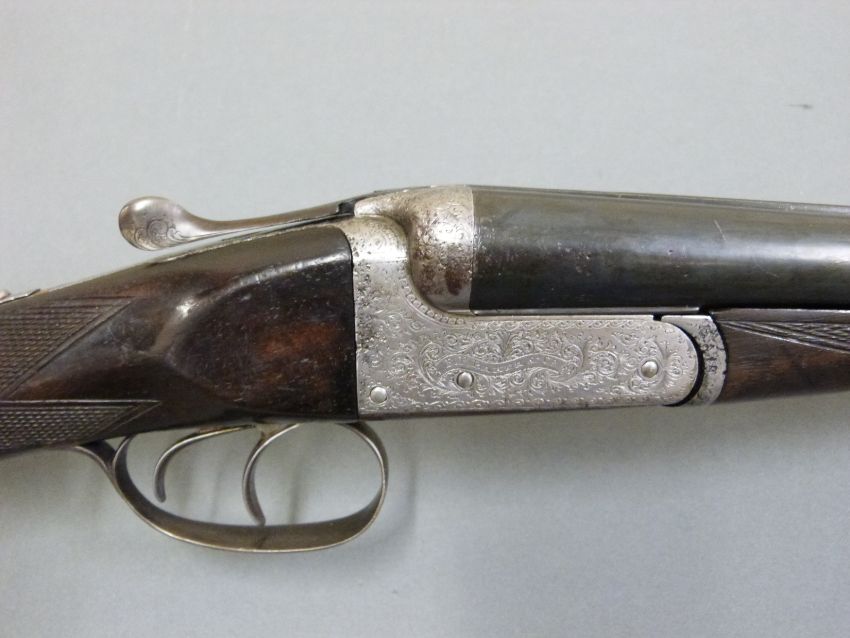 F P Baker & Co 20 bore side by side ejector shotgun with named and engraved locks, chequered grip and forend, double trigger, engraved trigger guard, top plate, top lever and underside, vacant cartouche to the underside of the stock and 27 inch barrels, overall length 110cm, length of pull 36.5cm, serial number 8021. PLEASE NOTE THAT A VALID RELEVANT FIREARMS/SHOTGUN CERTIFICATE IS REQUIRED TO HANDLE/PURCHASE THIS ITEM.
