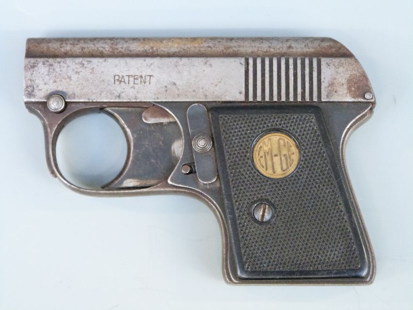 EM-GE German starting pistol with chequered composite grips, inset emblems and barrel engraved 'Patent' and 'Foreign Make', overall length 11.5cm, NVSN.
