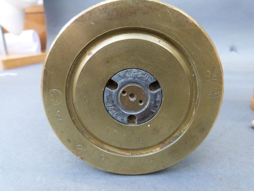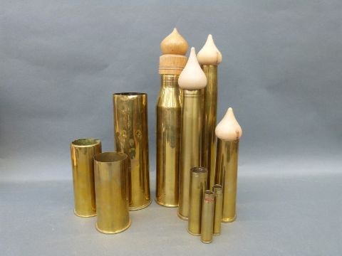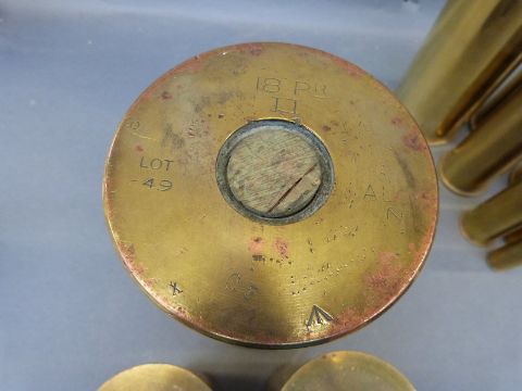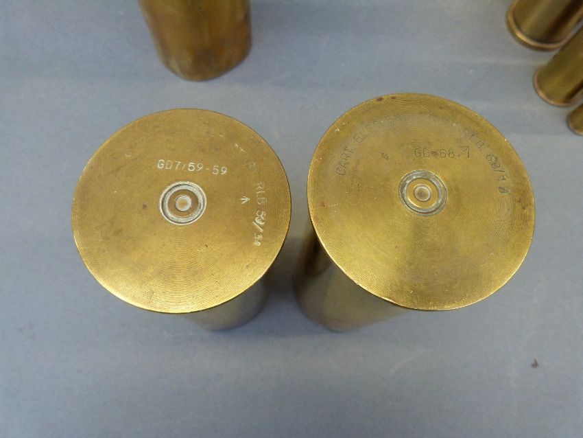 Eight WWII and later brass shell cases, largest marked 18Pr, two marked Eng start