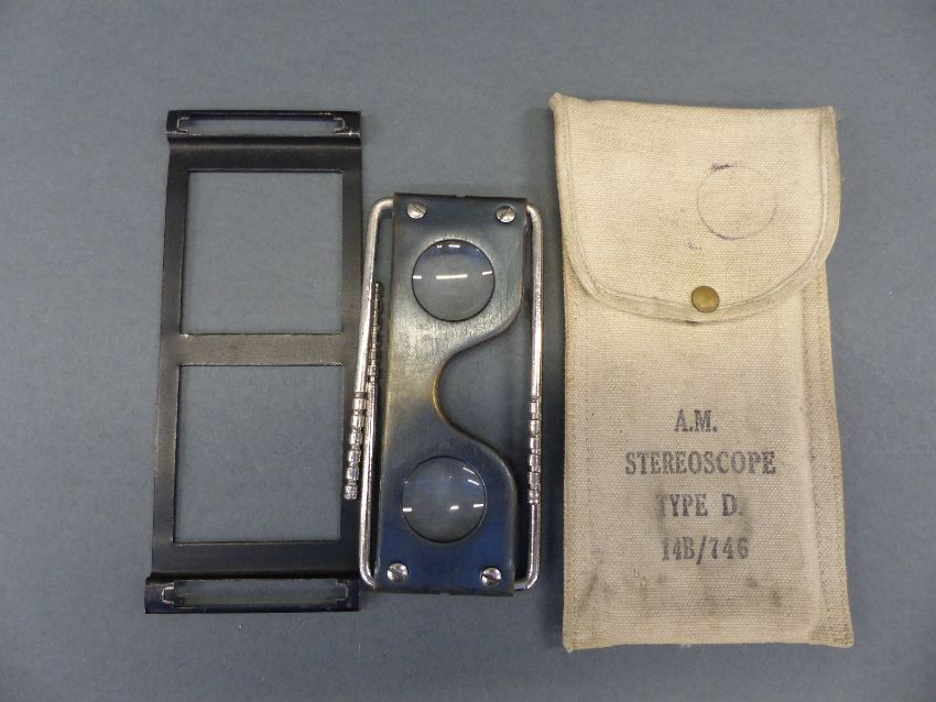 WWII Air Ministry motorcycle or similar tool box stamped 1940 together with an Air Ministry stereoscope type D