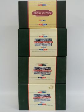 Four Corgi Premium Edition diecast model vehicles three Public Transport Southern National Bristol LL6B/Duple Coaches 33301 and British Rail Thames Trader Flatbed CC11001, all in original boxes