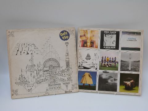 Pink Floyd album soundtrack from the film More SCX6346 1E062 04096 with flip backs - couple looking west, vinyl and cover appear excellent; A Nice Pair album with phang cover, Relics with white cover and a Pink Floyd London 66-67 video