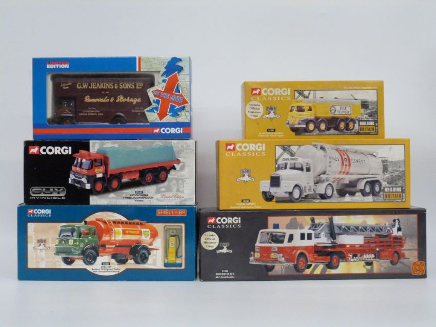 Six Corgi and Corgi Classics diecast model vehicles comprising 911 Fire Rescue 51802, Shell and BP 22801, Building Britain 16305 and 14501, On The Move CC11003 and Invincible 29102, all in original boxes