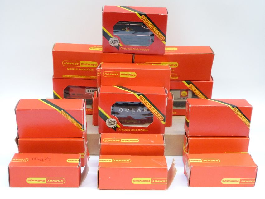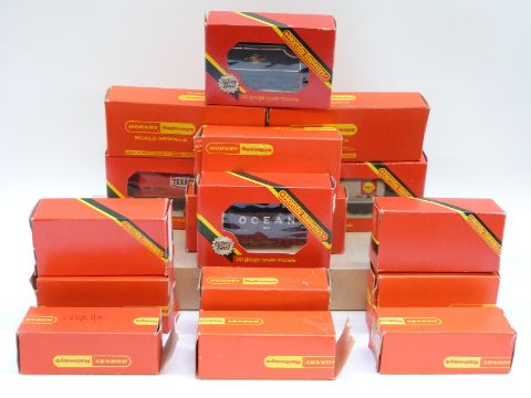 Seventeen Hornby 00 gauge, wagons, vans, tankers and Breakdown Crane set R739, all in original boxes