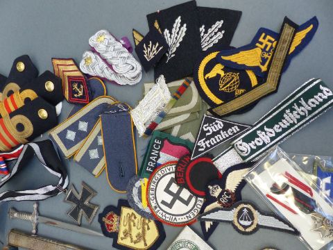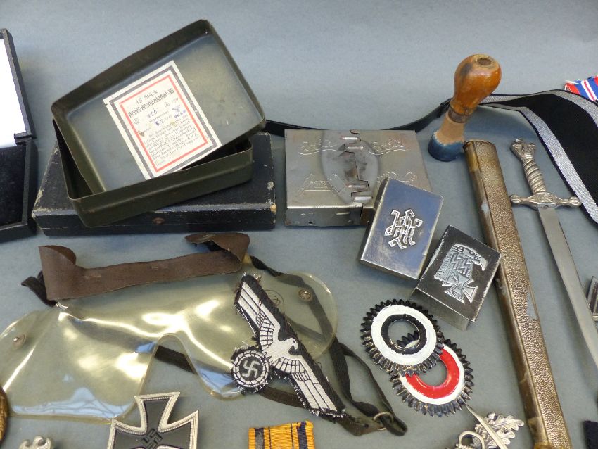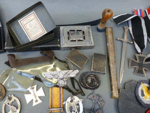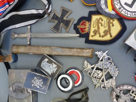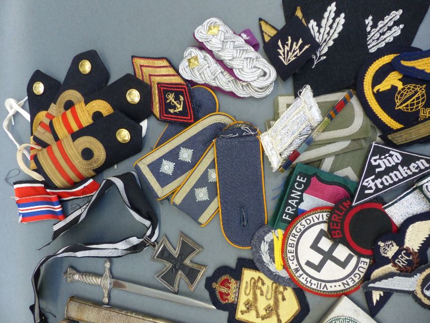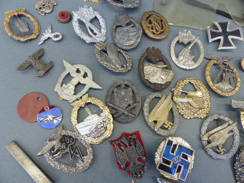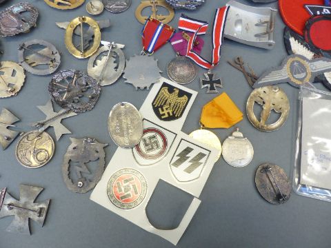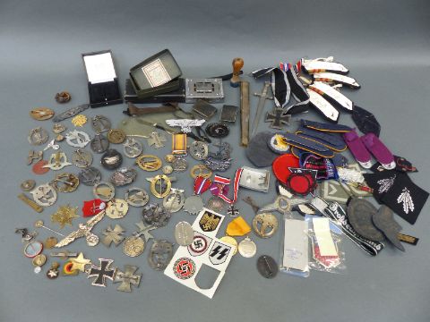 A quantity of WWII reproduction Nazi and other insignia and medals etc